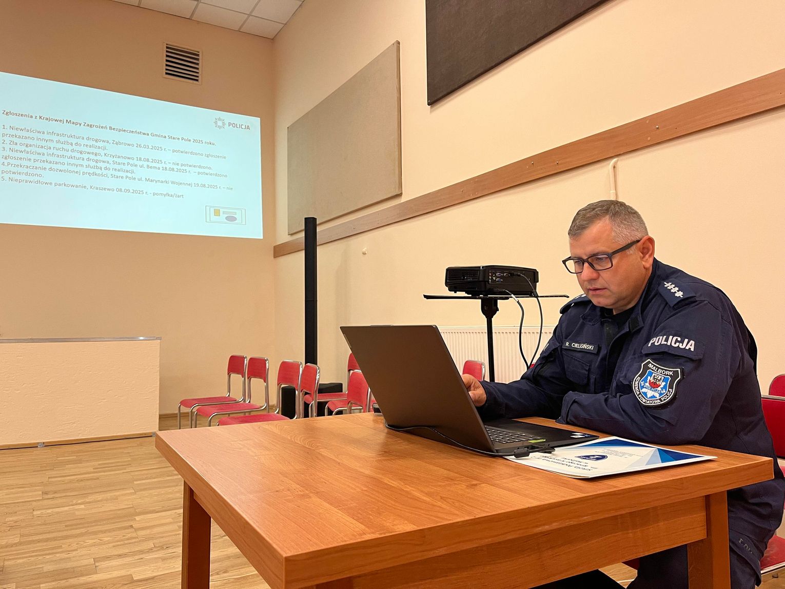 W poniedziałek o godzinie 17:00 w sali widowiskowej Gminnego Ośrodka Kultury i Sportu w Starym Polu odbyła się debata ewaluacyjna, która była kontynuacją debaty wyjściowej, podczas której funkcjonariusze podsumowali realizację wniosków złożonych przez uczestników na poprzednim spotkaniu. Tematem spotkania było bezpieczeństwo mieszkańców gminy Stare Pole. Policjanci poruszyli także zagadnienia takie jak uchronić się przed oszustwem, włamaniem oraz jak postępować w sytuacjach kryzysowych. Był też czas na rozmowę, podczas której mieszkańcy zgłaszali swoje problemy i przedstawili oczekiwania od lokalnych służb. Zorganizowane spotkanie potwierdziło, że współpraca lokalnej społeczności z Policją jest konieczna w celu zdiagnozowania zagrożeń bezpieczeństwa i podjęcia odpowiednich działań w celu wyeliminowania ich.