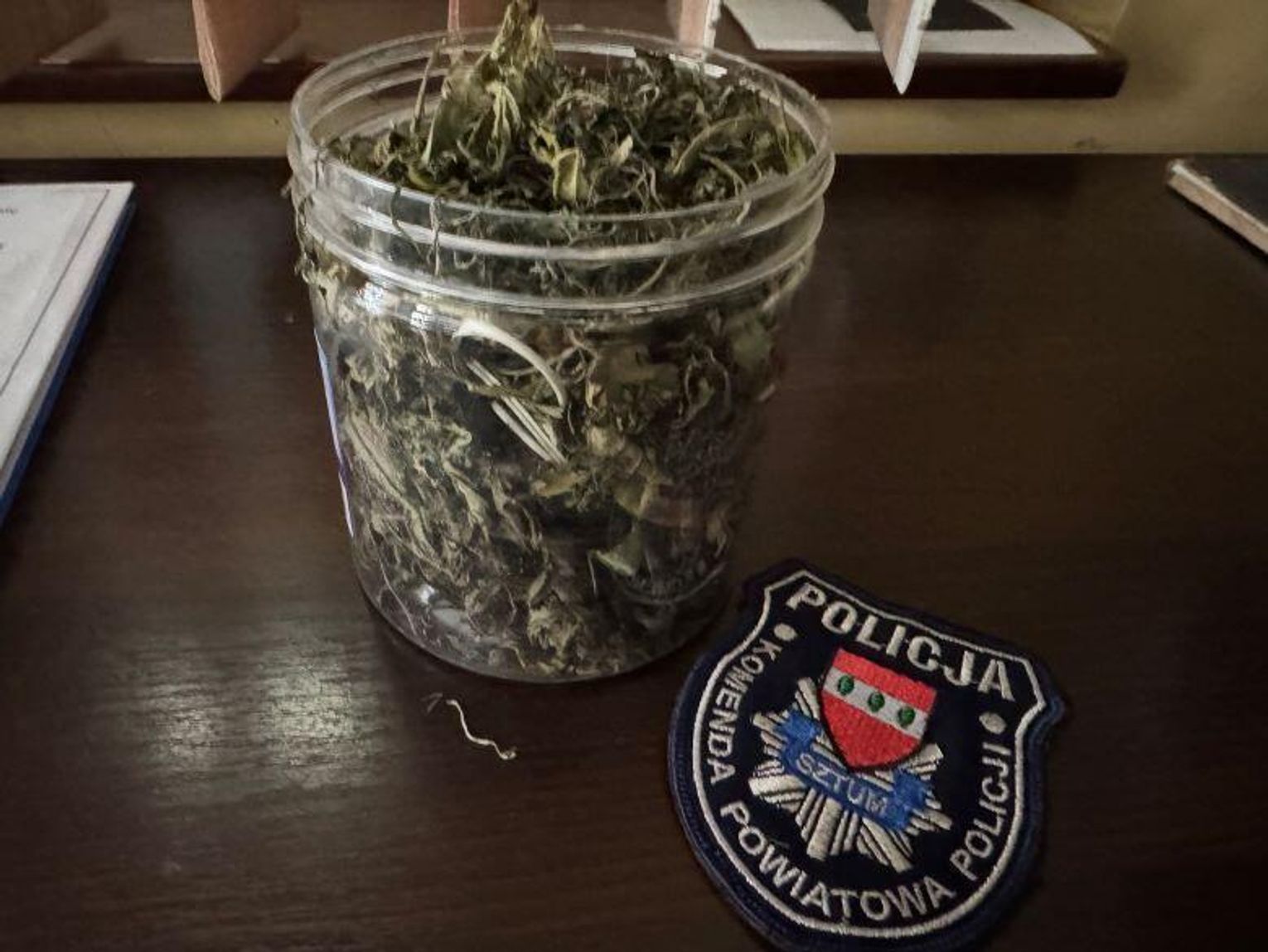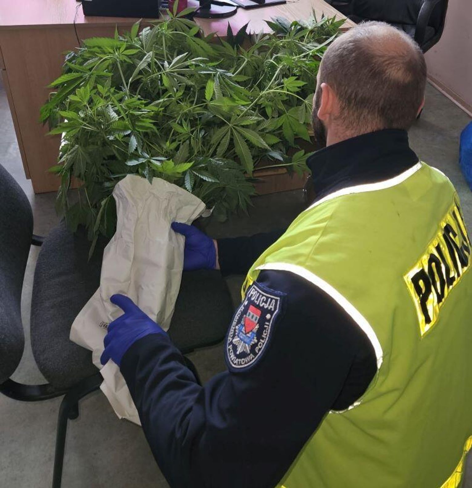 Podczas przeszukania domu funkcjonariusze w piwnicy ujawnili pojemniki z suszem roślinnym. Wstępne badania narkotestem potwierdziły, że zabezpieczony materiał to marihuana.