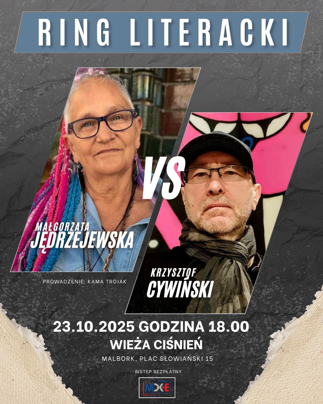 W pierwszym pojedynku na słowa spotkają się Małgorzata Jędrzejewska i Krzysztof Cywiński – autorzy, których twórczość i osobowość gwarantują wyjątkowe spotkanie. Nie będzie to tradycyjna rozmowa o książkach, lecz dynamiczna wymiana myśli, żartów i refleksji. Oboje potrafią słowem poruszyć, rozbawić, a czasem też zaskoczyć.