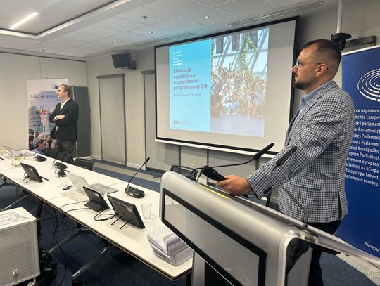 Drugiego dnia p. Michał Tragarz współautor podręcznika Edukacja obywatelska omówił zagadnienie edukacji europejskiej w nowej podstawie programowej przedmiotu Edukacja obywatelska.
