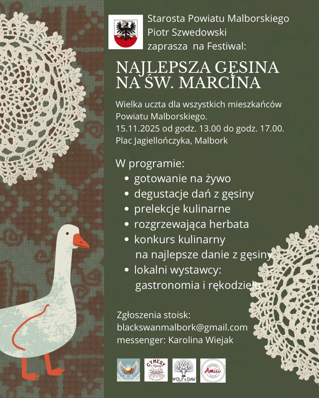 „Najlepsza gęsina na św. Marcina” to inicjatywa, która – jak zapowiadają organizatorzy – ma stać się coroczną tradycją obchodów dnia św. Marcina w Malborku. Festiwal ma promować nie tylko polskie zwyczaje i kuchnię regionalną, ale również wspólne spędzanie czasu w atmosferze ciepła i gościnności.