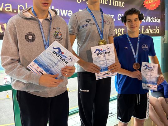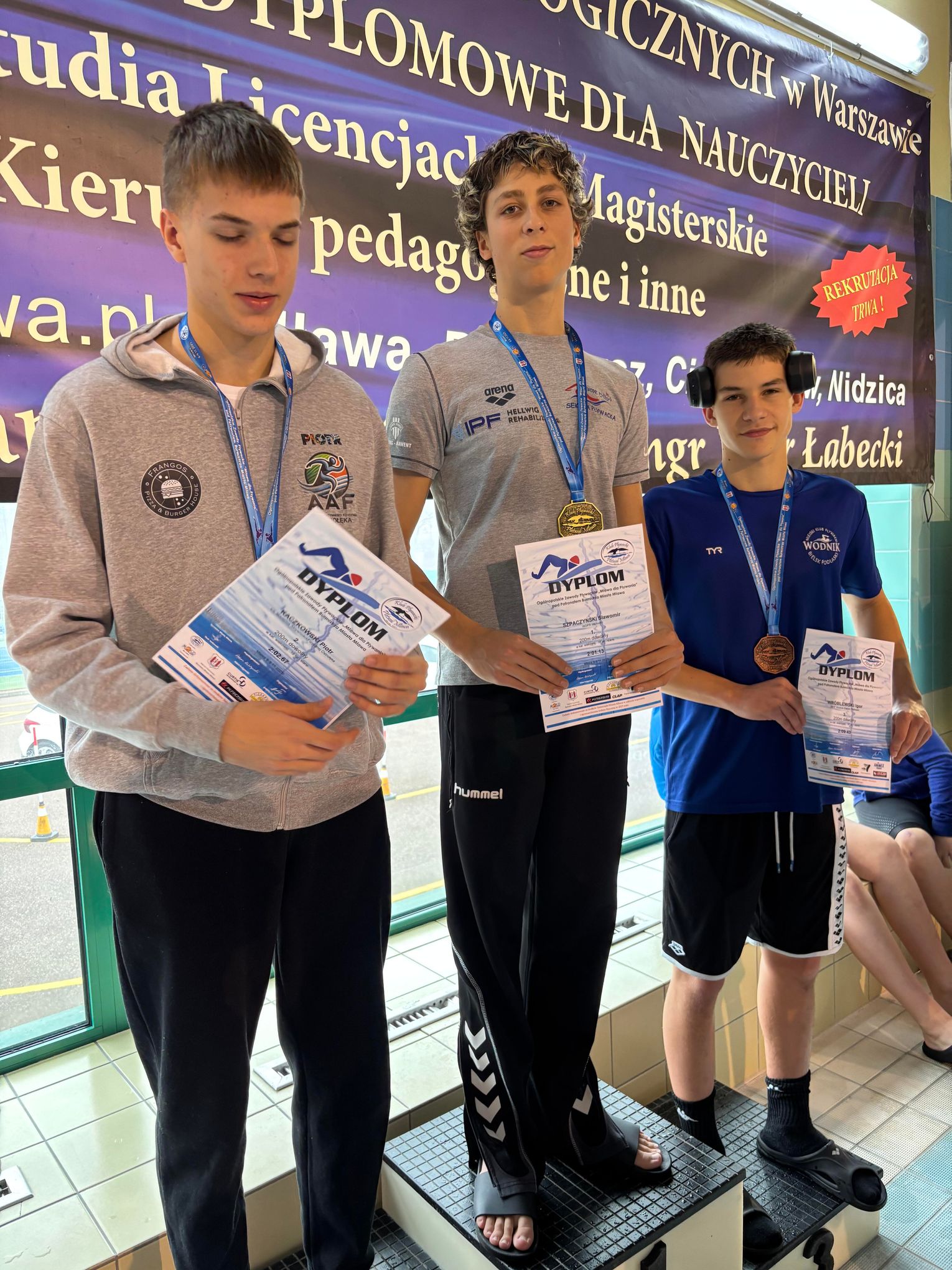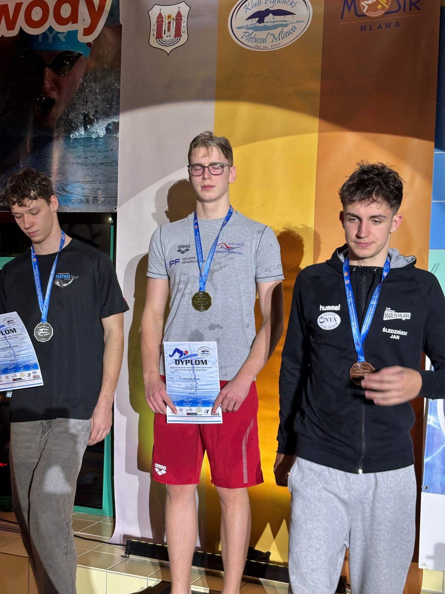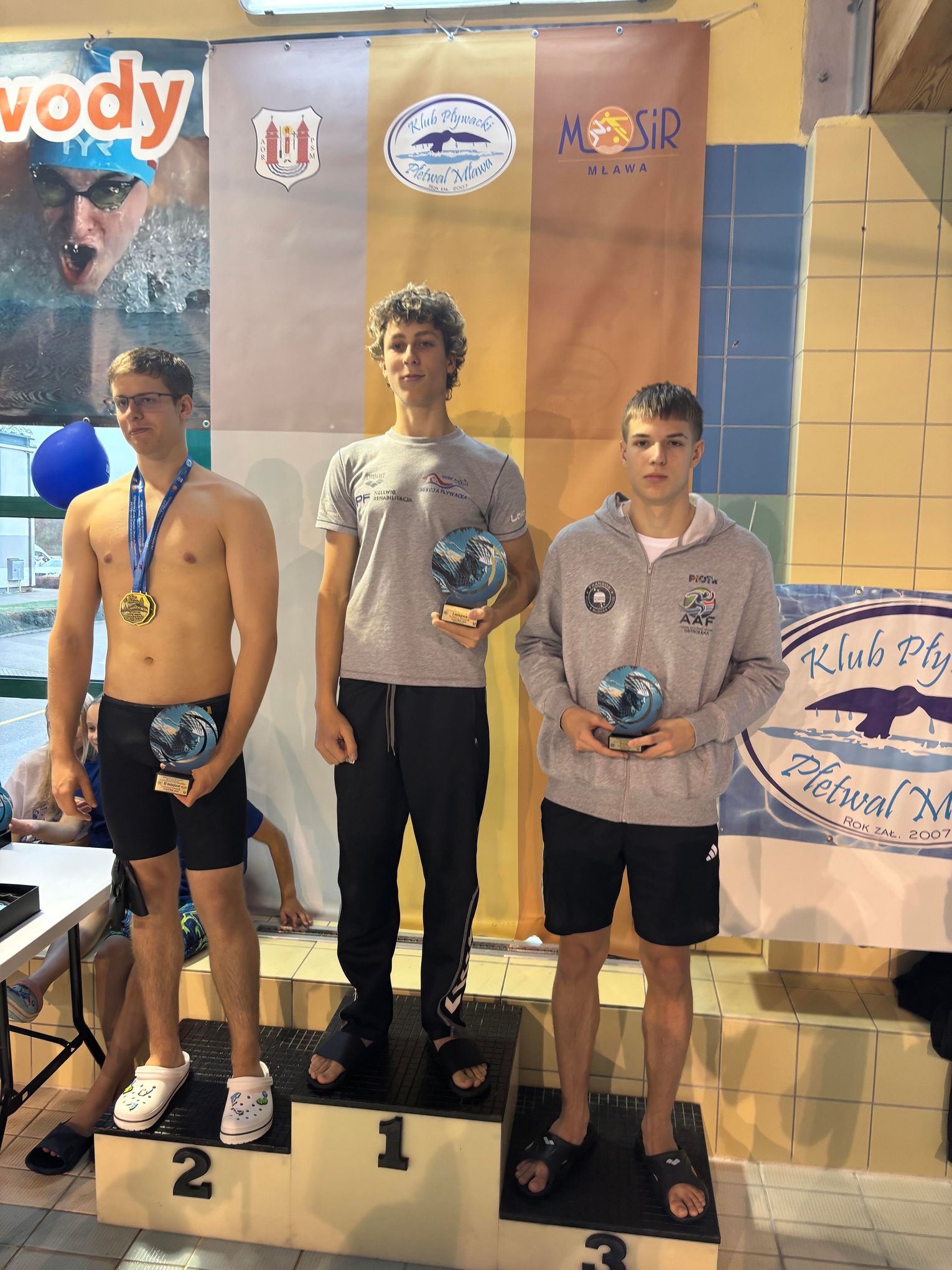 Także komplet medali wywalczył w Mławie drugi siedemnastolatek z MAL WOPR , Dawid Patoka. Trzy złota, srebro i brąz oraz dwa nowe rekordy życiowe to imponujący dorobek malborskiego pływaka. Dawid miał na zawodach dodatkowy, bardzo duży powód do zadowolenia. Jako jedyny pływak ze wszystkich startujących w Mławie, zapisał się na kartach historii rekordów mitingu. Wynik Dawida na 100 m stylem zmiennym wynoszący 1:01,79 okazał się być nowym rekordem mitingu w kategorii 15 lat i starsi.