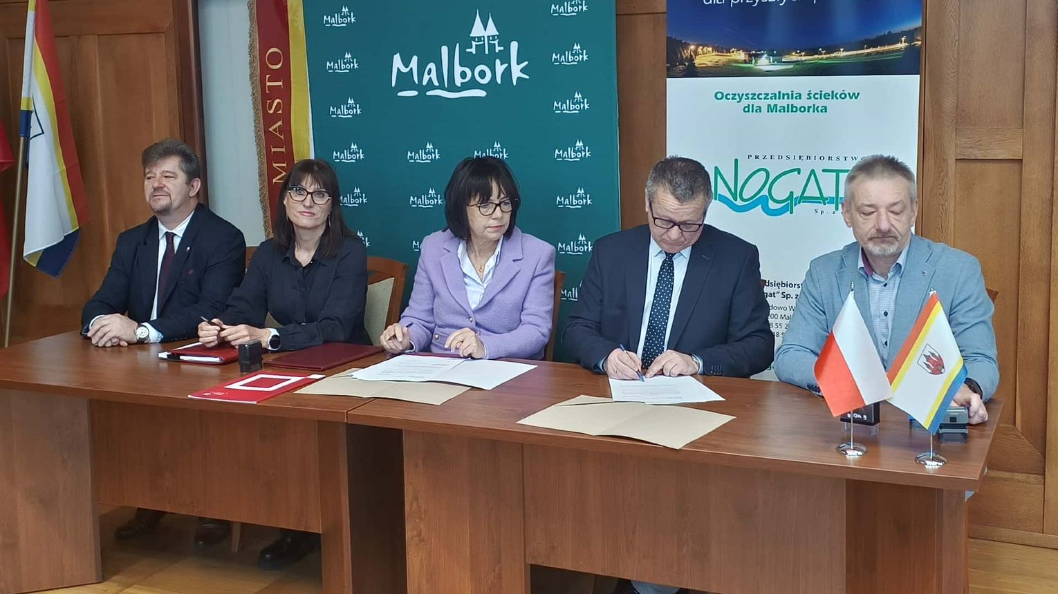 Dziś w Urzędzie Miasta Malborka została podpisana umowa w obecności Burmistrza Miasta Malborka Marka Charzewskiego, umowę podpisali Dyrektor Rozwoju Regionu BGK Monika Kasińska oraz Prezes spółki Nogat Wojciech Zegarek.