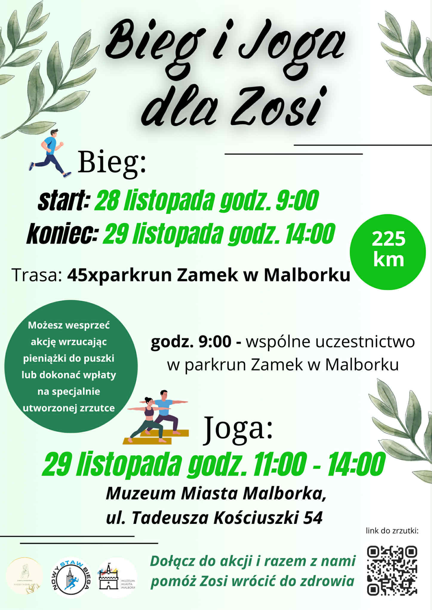 W pomoc organizatorom, poza Muzeum Miasta, włączą się także harcerze ZHP Malbork. Na trasie biegu i podczas zajęć jogi będą wręczali uczestnikom ulotki z kodem QR przekierowującym do zrzutki dla Zosi.