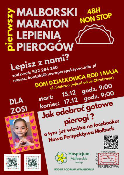 Fundacja Hospicjum Malborskie organizuje wydarzenie, które łączy świąteczny klimat, lokalną solidarność i bardzo konkretną pomoc. Każdy, kto w tych dniach zechce wpaść do Domu Działkowca ROD „1 Maja”, może dołożyć swoją „pierogową cegiełkę”. Wystarczy choć godzina – każda para rąk ma znaczenie.