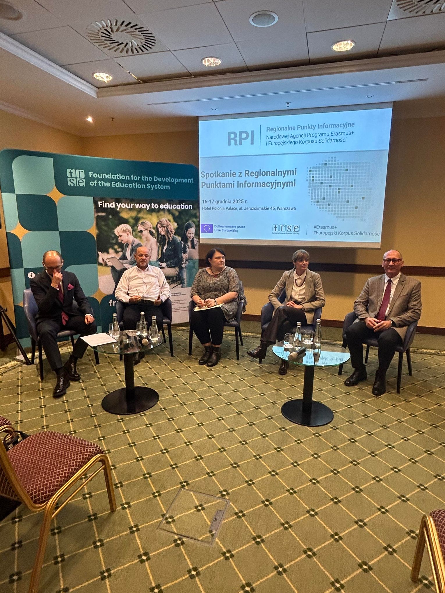 16-17 grudnia 2025 roku na zaproszenie Fundacji Rozwoju Systemu Edukacji Dyrektor Technikum Nr 3 w Malborku Jan Stawicki oraz Joanna Szymańska-Cybulska nauczycielka przedmiotów zawodowych – koordynatorzy: zarządzający oraz projektów mobilności Programu Erasmus+ uczestniczyli w konferencji, której uczestnikami byli przedstawiciele Regionalnych Punktów Informacyjnych Narodowej Agencji Programu Erasmus+ i Europejskiego Korpusu Solidarności w Polsce.