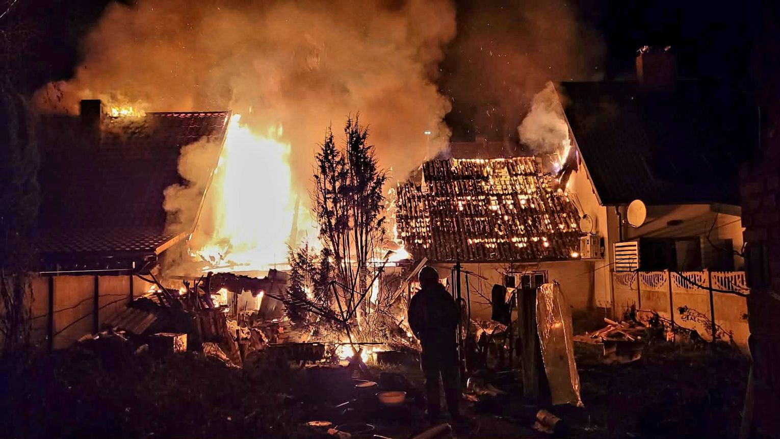 W wyniku pożaru jeden z domów spłonął całkowicie. W trzech pozostałych ogień objął poddasza, powodując znaczne straty materialne.