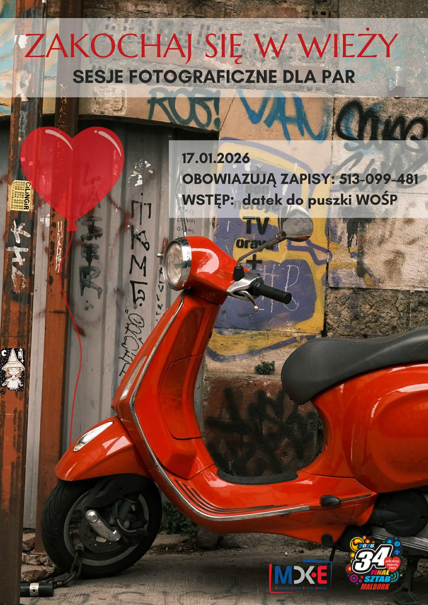 Wieża Ciśnień w Malborku po raz kolejny otwiera swoje wnętrza dla wyjątkowej inicjatywy. Tym razem będzie to romantyczna sesja zdjęciowo-filmowa „Zakochaj się w Wieży”, przygotowana specjalnie z myślą o wsparciu WOŚP. Wydarzenie odbędzie się 17 stycznia 2026 roku i skierowane jest do par, które chcą zatrzymać emocje i uczucia w wyjątkowej, artystycznej formie.