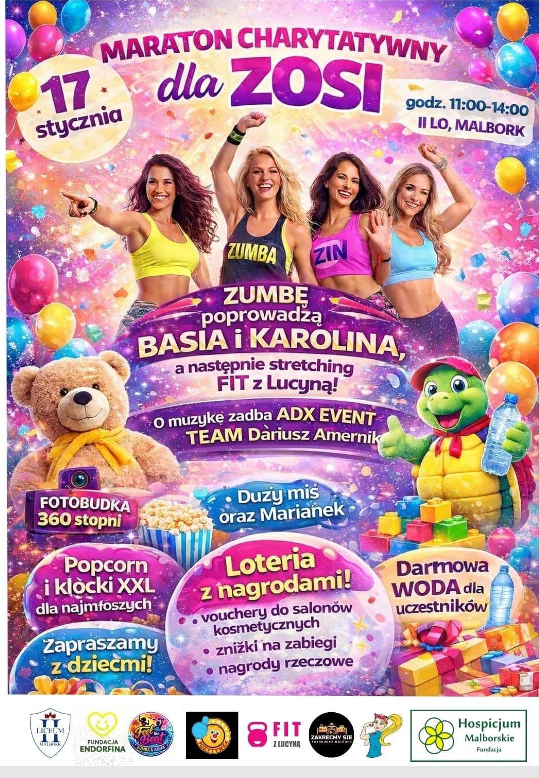 Sercem maratonu będą zajęcia ruchowe. Energetyczną zumbę poprowadzą Basia i Karolina, gwarantując solidną dawkę tańca i pozytywnej energii. Po intensywnym wysiłku przyjdzie czas na stretching FIT z Lucyną, który pozwoli uczestnikom wyciszyć organizm i zadbać o regenerację. O oprawę muzyczną i techniczną zadba TEAM Dariusz Amernik, dbając o odpowiedni klimat wydarzenia.