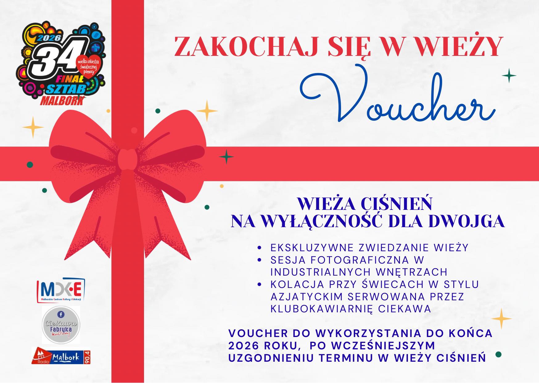 To jednak nie koniec działań Wieży Ciśnień na rzecz WOŚP. Przypominamy, że już 24 stycznia odbędą się kolejne wydarzenia, w tym nocne zwiedzanie wieży, warsztaty tworzenia zaczarowanych serc oraz quizy z niespodziankami. Dzień później, 25 stycznia, przewodnicy PTTK zabiorą nas na spacer po Wieży i Placu Słowiańskim, odkrywając nieoczywiste tajemnice historyczne tych miejsc. Cały czas można również wziąć udział w wyjątkowej licytacji wystawionej przez Wieżę Ciśnień – „Wieża Ciśnień na wyłączność dla dwojga”, która obejmuje ekskluzywne zwiedzanie budynku, kolację przy świecach w stylu azjatyckim oraz sesję fotograficzną w jej wnętrzu.