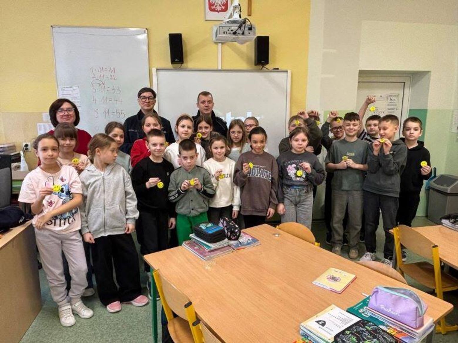 Na zakończenie rozdano uczniom elementy odblaskowe, które mają zwiększyć ich bezpieczeństwo w drodze do i ze szkoły. Tego rodzaju działania profilaktyczne pomagają utrwalać właściwe nawyki i kształtować postawy odpowiedzialności za własne bezpieczeństwo.