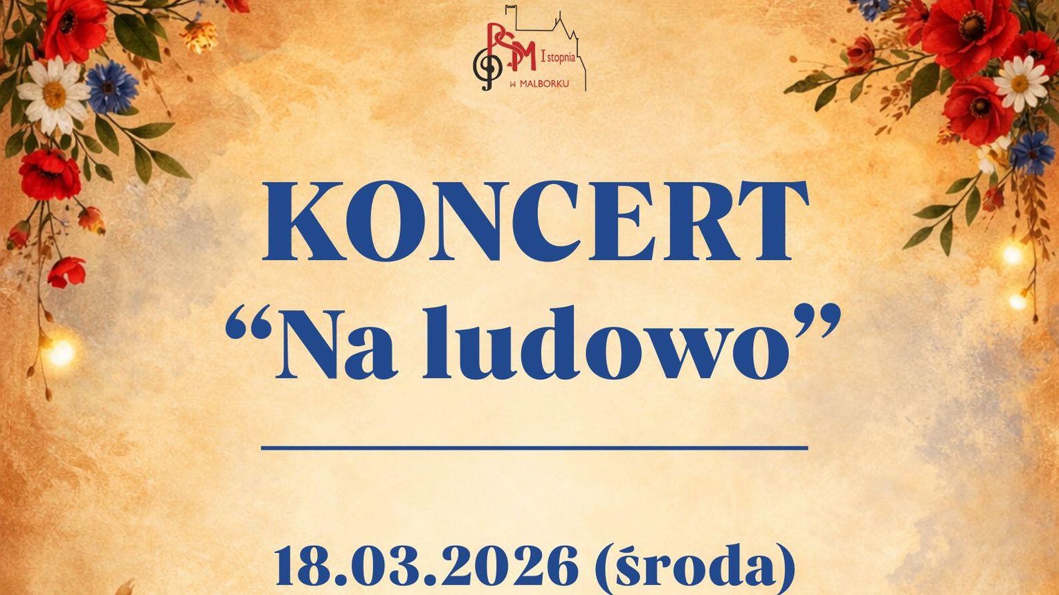Państwowa Szkoła Muzyczna w Malborku serdecznie zaprasza na wyjątkowy Koncert „Na ludowo”. Wydarzenie odbędzie się 18 marca br. (środa) o godz. 17:00 - sala koncertowa PSM, Plac Słowiański 18. Podczas koncertu usłyszymy utwory inspirowane muzyką ludową — pełne energii, kolorów i tradycyjnego brzmienia. Na scenie wystąpią uczniowie oraz nauczyciele szkoły, prezentując bogactwo melodii nawiązujących do polskiej tradycji.