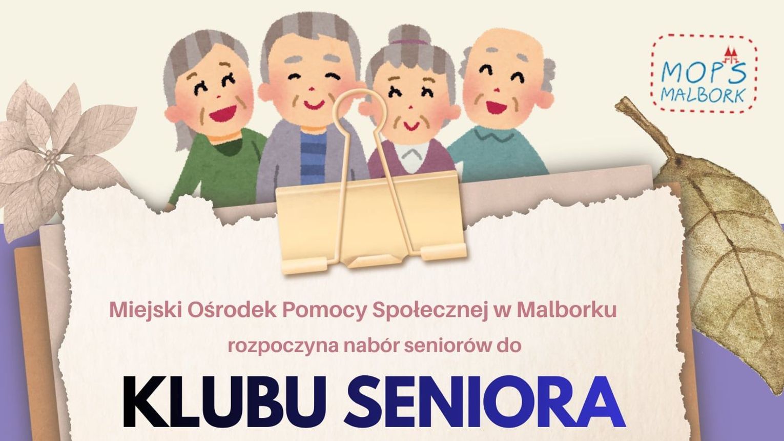 Miejski Ośrodek Pomocy Społecznej w Malborku rozpoczyna nabór do Klubu Seniora.